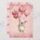Happy Valentine's Day romantic card with a personalized message and a pig illustration with heart balloons. Pink and red background with a plaid backing.