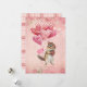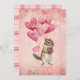 Happy Valentine's Day romantic card with a personalized message and a squirrel illustration with heart balloons. Pink and red background with a plaid backing.