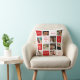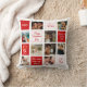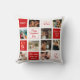 Valentine's Day pillow for a husband with a 9-photo collage and custom messages, hearts, and a modern red and white design. Add names, your favorite quotes, or your initials to make it unique for her. Solid red back side.