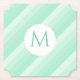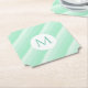 Custom Mint Green Stripes Trendy Modern Monogram Paper Coaster