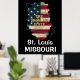Unique St. Louis, Missouri poster features a vintage state flag and the state nickname. It’s a great way to show your hometown patriotic pride. Personalise this product with your city, you can also change the background colour and font.