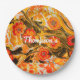 Custom Mod Mid Century Orange Flowers Yellow Brown Paper Plate