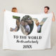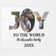 Custom modern 3 photo collage joy to the world. Personalise with your photos, family name and year