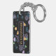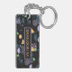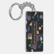 Durable rectangular key chain with classy, fun and contemporary teal, violet purple, orange, and lime green coloured abstract geometric triangles, polka dots and half circles mosaic pattern on a black background. With room to customise or personalise with name of your choice. Stylish, modern and cool customisable style for the fashionable man. To attach to your briefcase or backpack zipper, to hold loyalty rewards or membership cards, or of course... to hold keys! What ever keys you want to stay in place and hold together, a unique personalised key ring will make it look nicer and also easier to recognise as your own set. Click on our store name to check out more unique key holders with other custom designs.