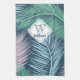 Custom modern floral tropical palm leaves pattern: showing light green, light blue and pink vector palm leaves against a nautical dark blue tone. ---