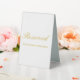 Custom Modern Gold White Script Wedding Reserved Table Tent Sign
