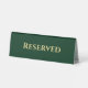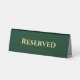 Create your own custom, personalised, professional, modern, elegant, simple, minimalist, classy, stylish, classic dark forest green and faux gold script / typography, white plastic polystyrene, business / special event reserved / reception / department desk table tent sign name plate. To customise, simply type in your text / department name. While you personalise, you'll be able to see a preview throughout. Perfect for restaurant, cafe, special event, wedding, hotels, resorts, motels, hospitality industry, convention centres, small business, and more.
