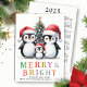 Custom Modern Merry and Bright Penguin Christmas Holiday Card