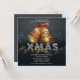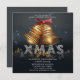 Custom Modern Merry Christmas Bells Black Gold Red Invitation