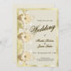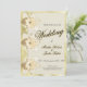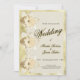 A custom unique modern wedding invitation with a beige narcissus flower with gold frame on a beige background and black text with beige shadows. The inscription "wedding" is designed diagonally and apart from elegance and sophistication, it also adds a modern touch to an unforgettable ceremony full of wonderful excitement. The flowers and gold frame emphasise the elegance, gala and sophistication of the ceremony, the couple and their families. The text can be modified according to your needs.