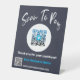 Modern Scan to pay business sign for your customers to scan and pay. Modern design where you add the QR codes for the form of payment. Add a QR code with your business or company information. Thank you message, company name and company website info or other information can be added to this desk top sign.