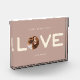 Great gift for Valentine's Day, Anniversaries or for Newlyweds: This modern photo block is easy to customise with your favourite photo inside the minimalist LOVE typography design.The wording around the word LOVE can be personalised. This is the muted blush and ivory version.