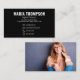 This design features a modern custom black and white business card with a simple bold minimal template, minimalist contact information info, with phone email mobile cell text, as well as contact icons website web address, full bleed photo back side, professional business corporate, freelancer independant small business, simple basic plain clean lines, with bold block style lettering