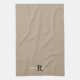 Custom Modern Taupe Monogram Script Initial Name Tea Towel