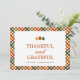 Celebrate the season of gratitude with our Personalised Thanksgiving Family Card. Featuring a cosy fall gingham background in warm autumn tones, this design highlights elegant script typography with the words “Thankful and Grateful” accented by delicate leaves. Simple yet festive, it brings warmth and charm to your holiday table or family gathering. Personalise with your family name, year, or custom message to create a truly meaningful keepsake. A perfect blend of rustic country charm and modern elegance.