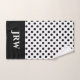 This monogrammed bath towel set is black and white and has a classic polka dot pattern. Personalise the set with the recipient's monogram/initials.