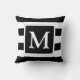 This black and white throw pillow has stripes and can be monogrammed with your initial.