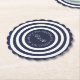 Custom monogram bold navy blue circle stripe wedding party coasters. Disposable dinner party supplies printed for engagement, marriage, bridal shower etc. Blue and white round circles. Change the quantity to get the cheapest price. Add your own initials and text like; Thank you for sharing our special day. Elegant script typography for bride and groom names. Round design with scallop border. Great for beer bottle, glasses and other drinks.