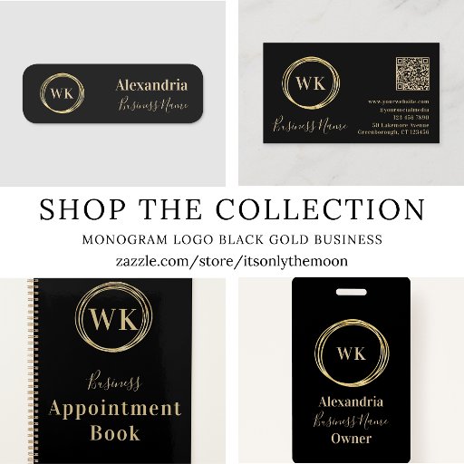This is a modern, monogram, black and gold custom business name design. This simple, stylish design is in classic black and gold with stylish typography script. You can keep the monogram logo or add your own and the template is set up for you to simply add your monogram initials (or logo), your name or employee's name and business name. Ideal for a professional, minimal, and elegant custom branded design. To personalise, simply add your details by using the personalise this text box. To change the colour or font, check out the design editing tool. For help with personalisation, matching products, or for a custom design email: ursuladawnmoon@gmail.com