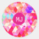 Custom Monogram Colourful Pink Red Triangle Classic Round Sticker