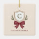 Custom Monogram Crest Bow Christmas Ceramic Ornament