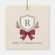 Custom Monogram Crest Bow Christmas Ceramic Ornament