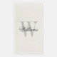 Custom name monogram elegant ecru paper guest towels. Elegant script typography design napkins with narrow fold. Personalised disposable party supplies for dinner party, reception, wedding, Birthday, event, gathering, family reunion etc. Stylish print with custom background colour. Fancy table decor for drying hands, powder room and more. Add initial of newlywed couple.