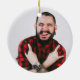 Celebrate Christmas with this personalised family ornament featuring a plaid Santa hat, antlers, and festive ornaments! The bold monogram initial and customisable name make it perfect for holiday gatherings and family photos.