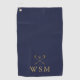 Custom Monogram Golf Clubs Navy Blue And Gold Golf Towel