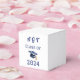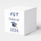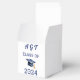 Personalise the graduation year and three-letter monogram on these Class of 2024 party favour boxes. Add sweet treats or other goodies to the box for a fun way to honour your graduate's special day. Blue text, white background, and blue graduation cap with gold tassel.