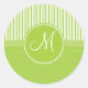 Custom Monogram Green Stripes Polka Dots Pattern Classic Round Sticker