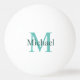 Custom Modern Elegant Trendy Template Monogram Initial Light Teal Green White Ping Pong Ball.