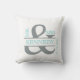 Personalised Custom Monogram keepsake wedding or anniversary pillow in grey and teal or mint green text or typography on a white background on the front and Teal Mint Green background on the back for square throw pillows and cushions. Customise with the bride and groom family name and wedding date. This stylish and chic, modern, trendy, contemporary design will enhance any home decor, living room, sofa, lounge, bedroom, office, or boat. This pillow or cushion is a perfect gift weddings, anniversaries, bride to be, couples, engagements or for yourself or someone you love. Simple and elegant.