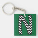 Custom Monogram Keychain: N: Black, White Chevrons Key Ring