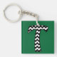A very stylish keychain with the initial 'T' in a black and white chevron pattern. The background shown is dark green but you can choose from a wide selection of background colours by using the Edit button. You can also choose a different type or shape of Keychain or rotate the initial for a better fit - have fun with it!