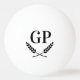 Custom monogram laurel crest logo ping pong ball. Initialled table tennis balls with elegant laurel wreath design. Custom monogrammed balls for players.