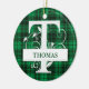 Custom Monogram Letter T Green Plaid Background Ceramic Tree Decoration