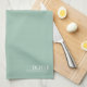 Custom monogram, modern sage green tea towel