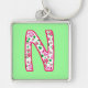 Custom Monogram N Keychain, Ditsy Floral Pattern Key Ring