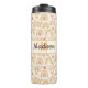 Customisable monogram name thermal tumbler personalised gift with a pattern of watercolor painted modern boho rainbows in earthy neutral tones.