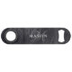 Personalise this modern bootle opener / bar key with name and monogram name initial. This masculine script design is a unique, monogrammed gift idea for a bachelor party, graduation, Fathers Day, or birthday gift for dad, brother, uncle, father, granddad, son, groom, or groomsmen! The backdrop of printed dark wood makes for a rustic elegant feel.