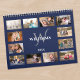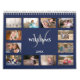 Easily create your own modern monogram 2026 calendar. Replace the sample images for each month and they will automatically appear around the edges of the front cover and in a grid on the back cover. Add your name, monogram, and the year in the sidebar and they will appear in the middle of the front cover in cool white and grey fonts on a navy blue background.