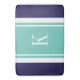 Custom Monogram Navy Teal Mint Stripes Pattern Bath Mat