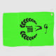 Personalised monogram neon green golf towels with golfing themed design. Great gift idea for a keen golfer.