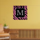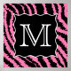 This black and white monogram letter design has custom text for your initial letter choice, on a bold and stylish zebra print pattern in black and pink. A trendy looking monogrammed animal print design.