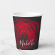 Macro photo of a beautiful red rose on black background with vintage grainy effect with custom personalizable monogram.