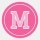 Custom Monogram Retro Typography Pink Classic Round Sticker