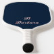 This modern carbon fiber pickleball paddle design features a blue background, with your initials in white highlighted in red, with a custom script for a look that is simple and stylish. This Pickleball Paddle is ideal for wide range of players and experience. Featuring a hand wrapped grip and fiberglass & polypropylene honeycomb core, this lightweight paddle offers excellent feel and ample power for the competitive player. The smooth hitting surface and conventional shape allows for a bigger sweet spot for more solid contact. Any design questions just send a chat or an email to v.dye@rcn.com and we'll be delighted to assist.