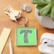 A very pretty Keychain with the initial 'T' in a ditsy purple and green floral pattern on a Light Green background. You can easily change the shape and size of the keychain as well as the background colour (by using the Edit button). And if you see one of my other patterns that you prefer, please contact me through my store and I will create one at no extra charge.