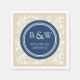 Custom Monogram Wedding Napkin Beige Blue Damask